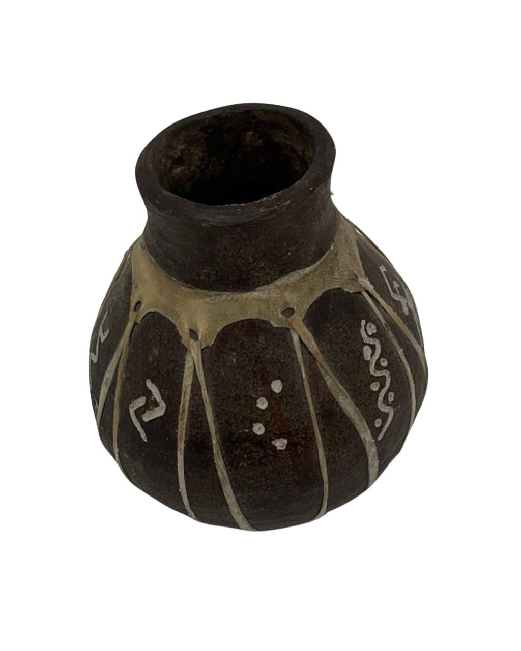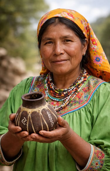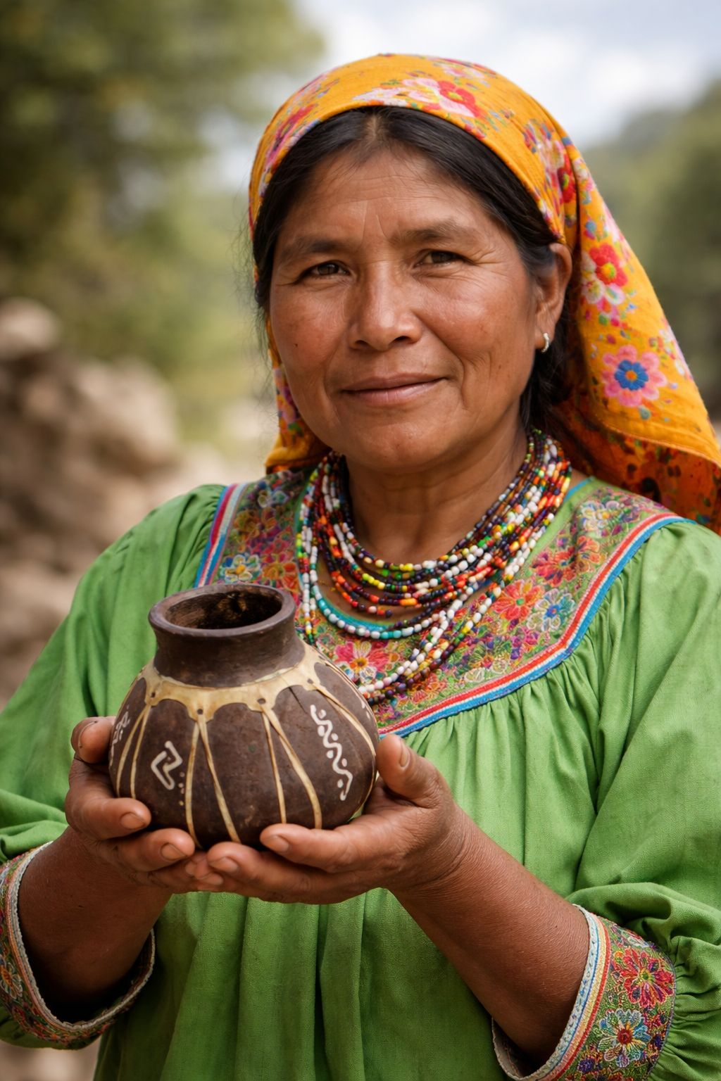 Esta pieza de cerámica Tarahumara refleja la profunda conexión del pueblo Rarámuri con la tierra y su entorno natural. Sus formas orgánicas y diseños geométricos, pintados a mano, representan caminos, ciclos de la vida y creencias espirituales. Utilizada en la vida cotidiana o en contextos rituales, cada pieza transmite conocimiento, identidad y cosmovisión, conservándose hoy como un testimonio vivo de una de las culturas indígenas más resilientes de México.