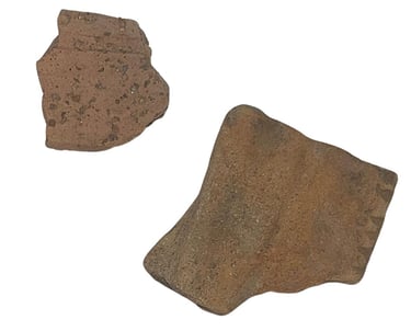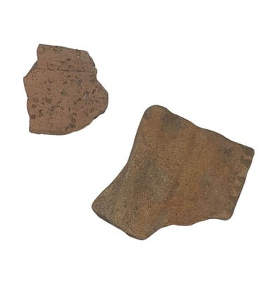 Estos fragmentos cerámicos pertenecen a tradiciones alfareras mesoamericanas donde la cerámica fue fundamental para la vida cotidiana, ritual y económica. Elaborados con barro cocido y desgrasantes minerales, formaron parte de vasijas usadas para almacenar alimentos, preparar bebidas y realizar ofrendas. Sus colores, texturas y técnicas reflejan el conocimiento tecnológico de estas culturas y su profunda relación con la tierra, el fuego y los ciclos de la vida.