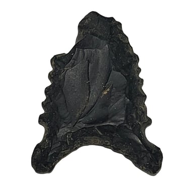 Este tipo de puntas de flecha y dardos fue utilizado por pueblos como los Apache, Navajo y Ancestral Puebloans para cazar, defenderse y asegurar su subsistencia. Elaboradas a mano con gran precisión, estas herramientas aprovechaban el filo natural de la obsidiana. Más allá de su función práctica, representan el conocimiento transmitido entre generaciones y la profunda relación de estas culturas con los recursos de su entorno natural.